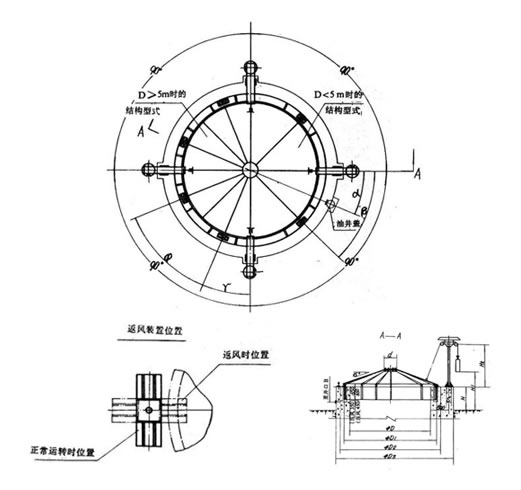 1、防爆蓋采用錐形結構,分四個部分聯接而成,每部分由鋼板,角鋼組焊成型。